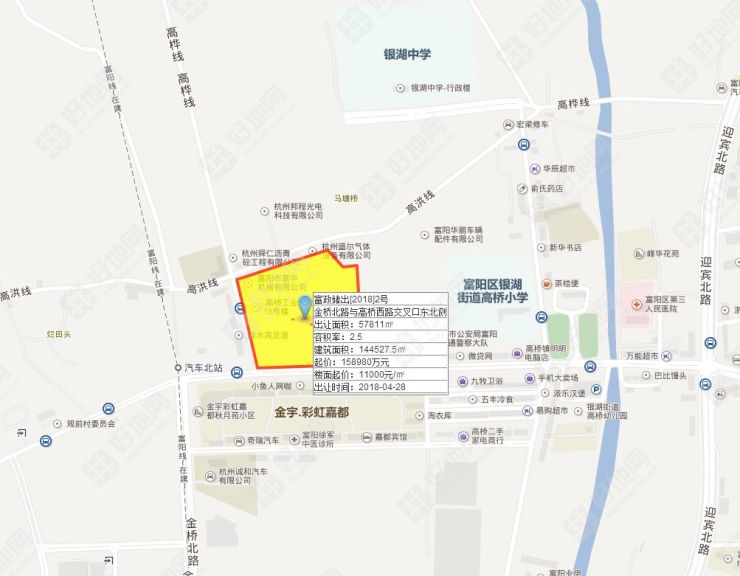 4月28日,浙江中天房地产集团有限公司以159900万元竞得富阳金桥地块,楼面价11064元/㎡,溢价0.58%。