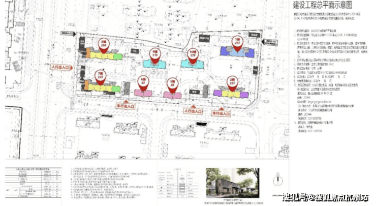11-01地块是商业、住宅混合地块。规划3栋总高17-29层住宅,商业部分有2栋总高30F的酒店、23F的综合楼、以及2栋3F的商业;住宅和商业部分通过公共通道分隔;住宅部分人车分流,无地面车位。车行入口在西侧祁健路上。