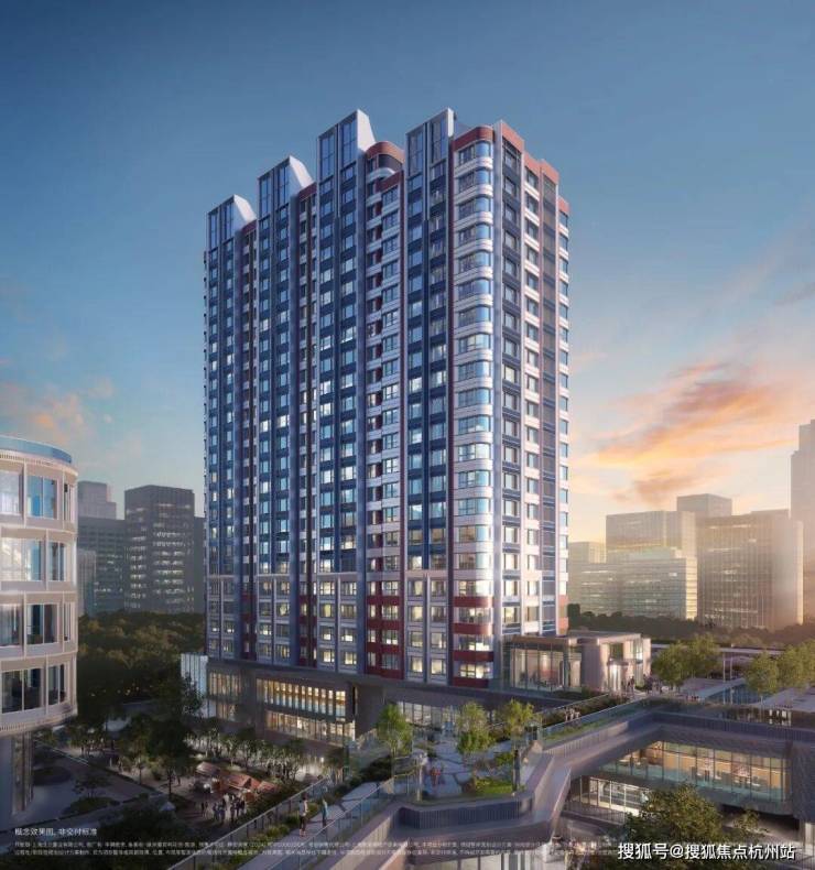 比如,选取珍珠蓝、香槟金、海派砖红等色彩,约270°圆弧建筑立面。