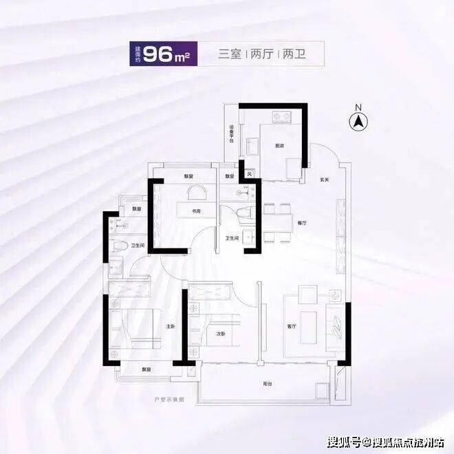 建面约95、96㎡室内拥有双开间大尺度阳台、全屋四处飘窗、套房式主卧,舒适度颇高。