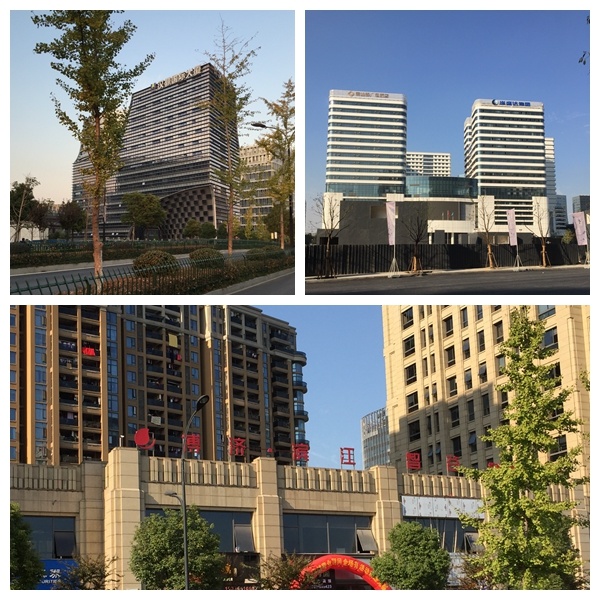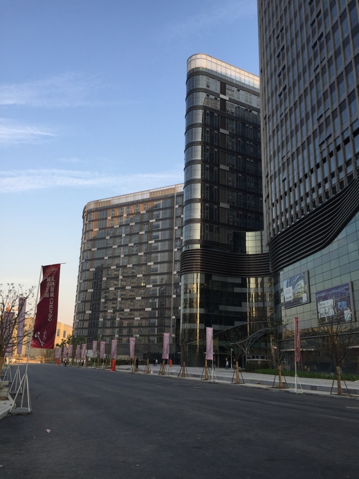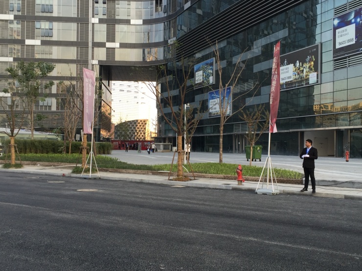 由于该项目是集购物中心、办公和综合展示厅等复合功能的综合体,所以与普通住宅有很大的差异,项目容积率高,园区内部也无过多的绿化,且项目是分期交付,其他楼栋大部分还在施工中,除了通往此次交付3号楼的专门通道,其他区域外围都有明显的围挡。