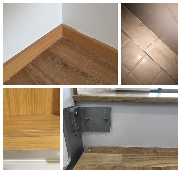 装修细节上的确有些不足,如踢脚线、还有卫生间储藏柜等位置,接缝做的不是很好。其他并无大问题。