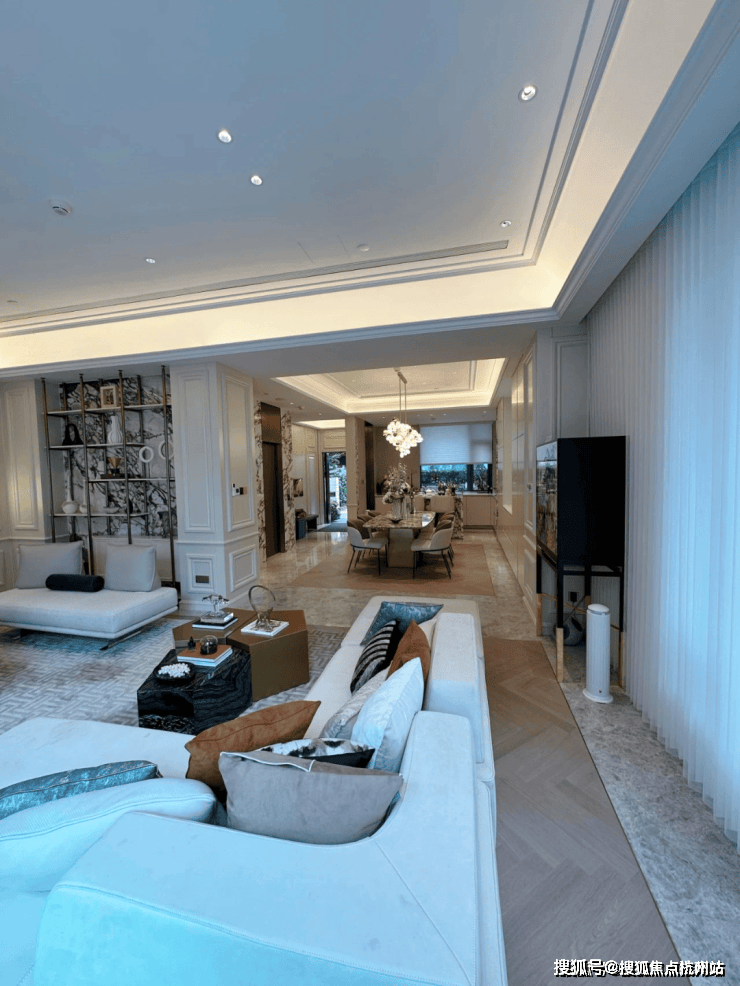 在室内设计上,入户大堂采用二层挑空设计,高贵大气,凸显空间感,提升大平层的整体价值;