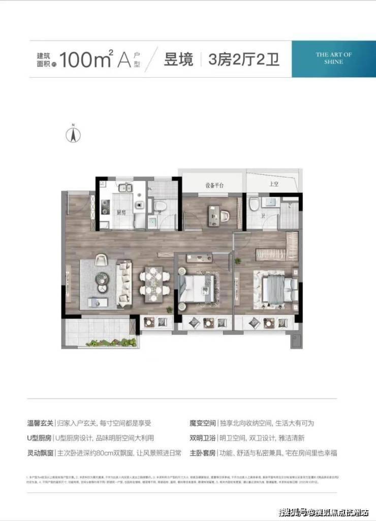 主力户型:100㎡(三室两厅两卫,总价约157-170万)、110㎡(三室两厅两卫,总价约170-185万)、125㎡(四室两厅两卫,总价约200-240万)