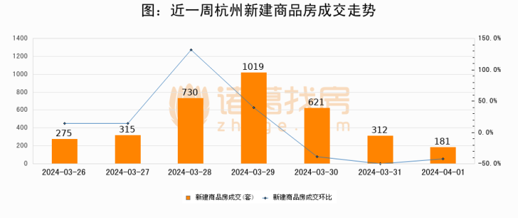 【杭州成交日报】04月01日新房成交181套、二手房267套;涨价房源81套