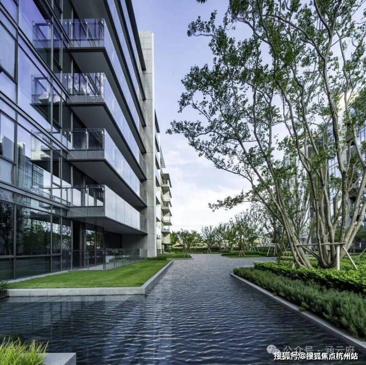 涵云府南面、西面 两面临河 ,建筑如温润玉珏嵌在L型河湾里,像从河岸生长出的半岛,静谧又灵动。项目沿河景观带也由凌珂代建,家门口便是一座约9700平方米的 滨水公园 。晨时能闻见草木与河水交织的清新,傍晚可瞥见夕阳漫过河岸的暖光。