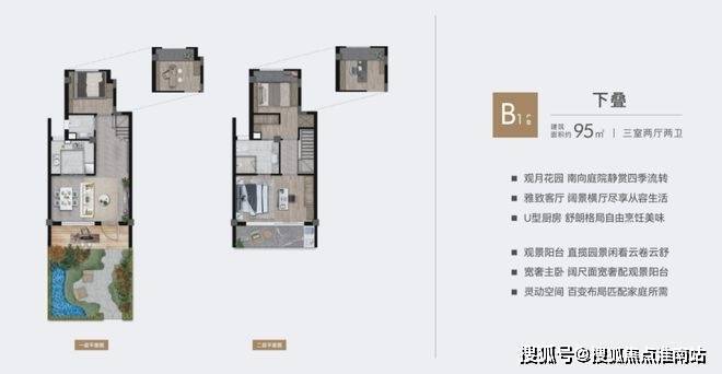 最后我们聊聊项目的产品,以建面约95㎡下叠的中间套为例: