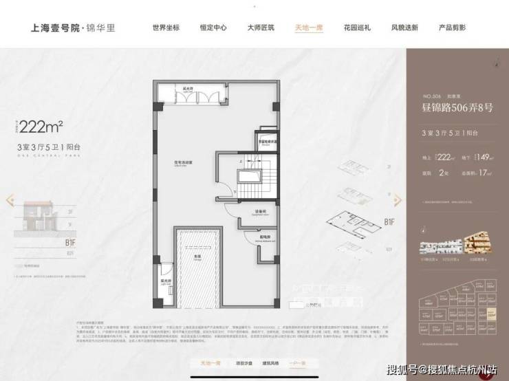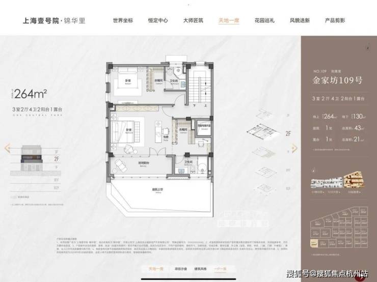 上海壹号院整体分为一期、二期开发,总占地面积约9.6万㎡,总建筑面积约43万㎡,住宅总可售面积约为22.8万㎡。由6栋14-37高层、151席联排及合院以及蓝绿丝带独栋商业组成。