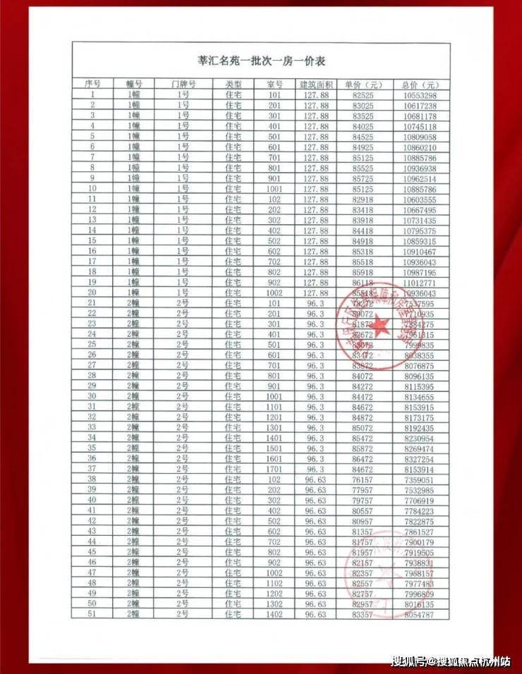 附上一房一价表: