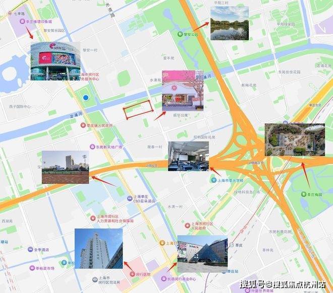 网上有人说这块地是闵行区污水处理厂拆迁而来,其实并不准确。闵行区污水处理厂在淀浦河与北横泾的交汇处,在这个项目以西约200米左右。项目地块这块地从90年代至今曾历经报春菜场、京代会所、小田园饭店、全季酒店、聚鑫阁饭店等。