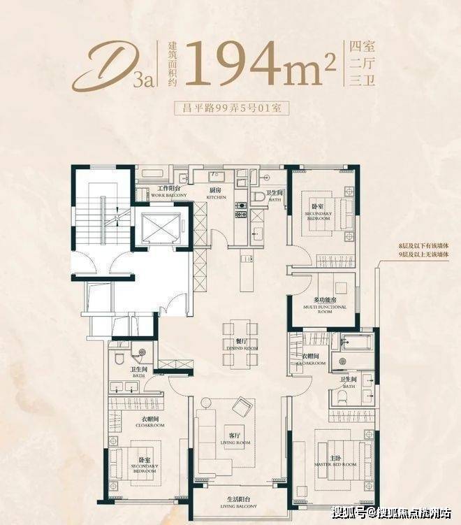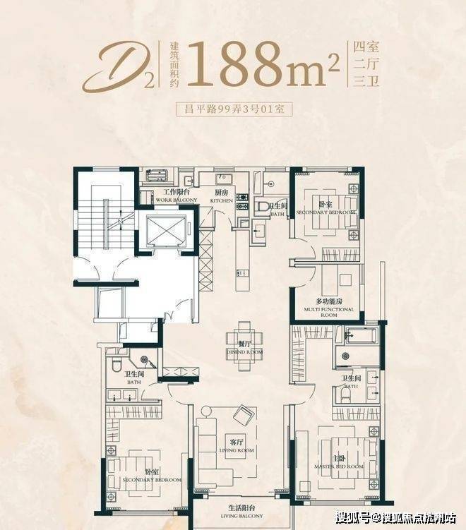 建面约183㎡4房2厅2卫户型:昌平云岸售楼处电话:400-8815-114