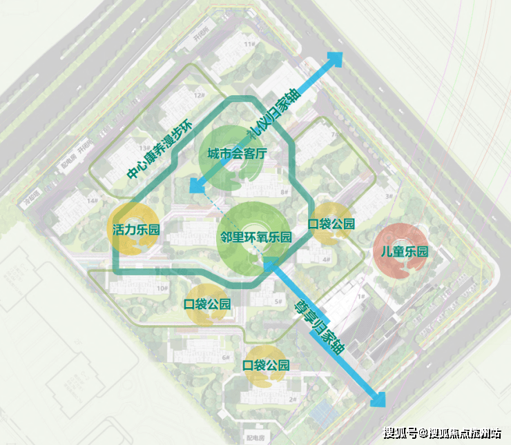 雅乐云庭融合自然之意,以多重绿植组团效果,构建“一环二轴多亮点”的景观空间结构,中心康养漫步环,让健康生活在自然里发生;礼仪归家轴、尊享归家轴,铺排业主归家的仪式感;邻里环氧乐园、城市会客厅、儿童乐园、活力乐园、口袋公园,功能迥异却紧密相连,自然绿意,围合生活之美。