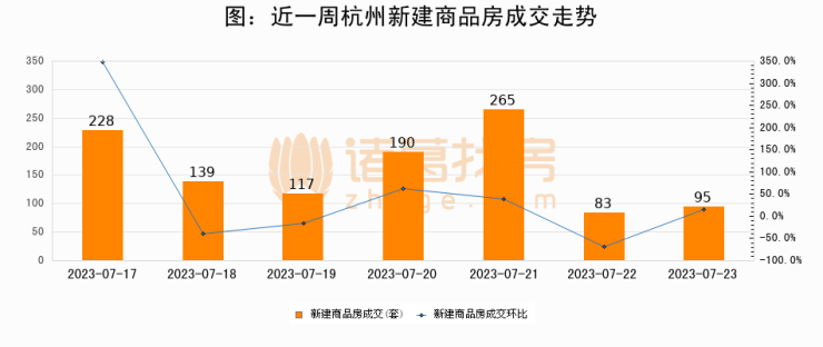 【杭州成交日报】07月23日新房成交95套、二手房105套;涨价房源26套