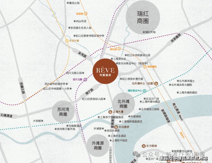 商业配套:利通广场、壹丰广场、中信广场、1933 购物中心等在步行距离内,直线距离北侧瑞虹新城三件套约 1.5 公里。