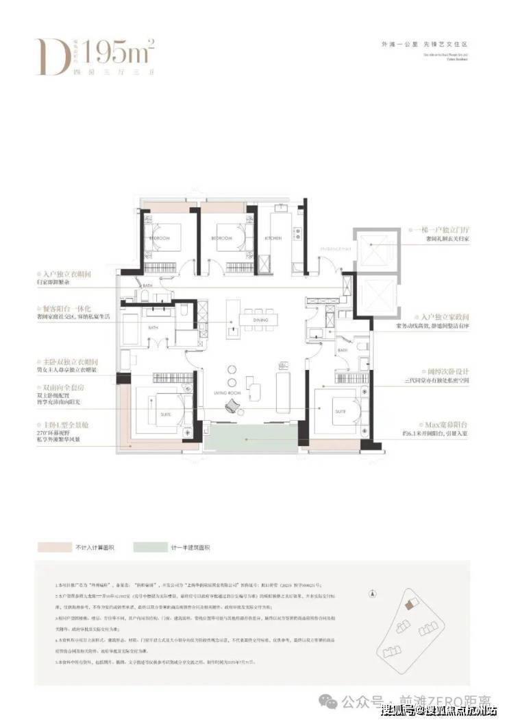 建面约195㎡4房 总价约2700-3300万