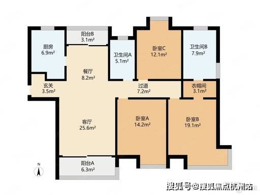 建面约 136-139㎡三房两厅两卫户型,项目主力改善户型,经典飞机户型,三开间朝南,南北通透,双卫全明,私密性强。客厅面宽约 4.5 米,连接南向阳台,空间开阔通透,主卧套间设计,带独立卫浴与衣帽间,尊享私密生活,双次卧空间方正,均带飘窗,可作为儿童房或书房,满足三口之家或二孩家庭居住需求,总价 1017 万起,改善首选。