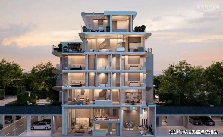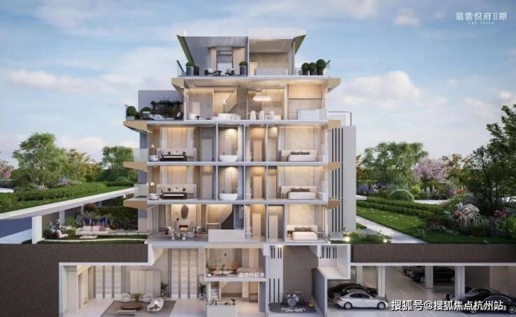 空中悬浮庭院:将院落生活托举至云端,让上叠也能拥揽“有天有地”的自然意趣,实现上下叠庭院平权。