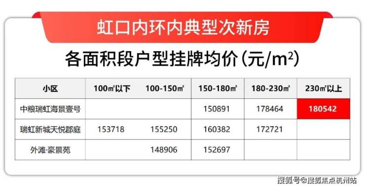 如果把虹口内环内几个典型次新房小区按面积段做细分,你会发现230㎡以上大户型的挂牌价超过18万/㎡,比150㎡以下户型普遍要溢价15%左右。