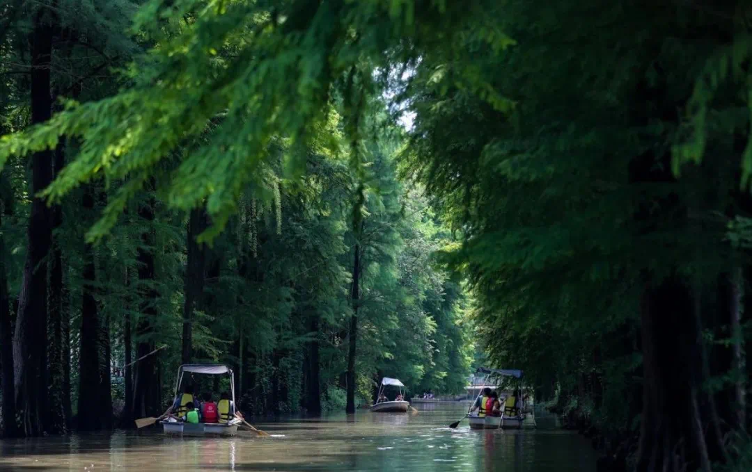 摄影/王珏两岸的水杉也是那会儿栽下的,别看这些水杉纤细,但都有四十多岁啦。炎炎夏日将至,在周末和家人一起到这儿划船嬉戏,涓涓水波声格外解压。茂密的水杉为游客们挡住了酷暑,船行其间,有种身处秘境的感觉。