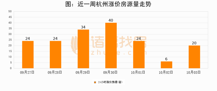 根据诸葛找房数据显示,杭州24小时涨价房源量为20套,较10月02日增加14套,环比上涨233.3%。与此同时,涨价房源占比小幅扩大,业主信心有所提升。