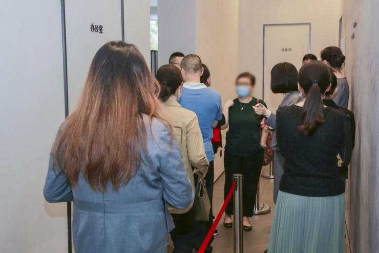 样板示范间前,已排起了长长的看房队伍,考虑到客户的参观体验,现场不得不引导客户排队参观。潮涌的人群中,我们能听见不少关于武林稀缺性的话题,最多的就便是“附近没有这么市中心的房子了吧?”