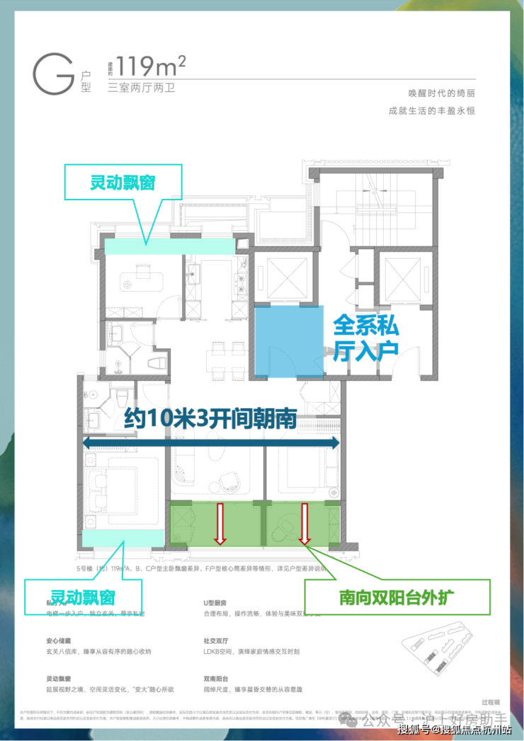 配合“多阳台半赠送”等空间策略,实现了令人惊叹的 约94%超高实得率 (119㎡亦达约91%)。
