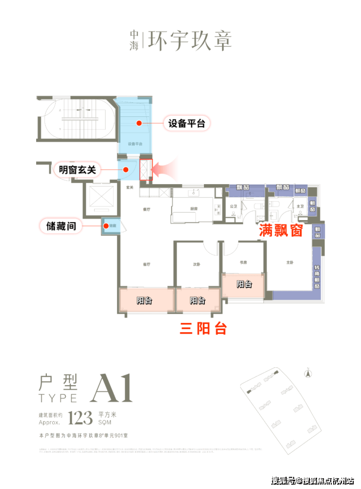 它通过精心设计的南向三个阳台和全屋的飘窗,巧妙地多出了约几十平的面积。这意味着,你花的123㎡的钱,享受的是接近140㎡左右的居住体验。