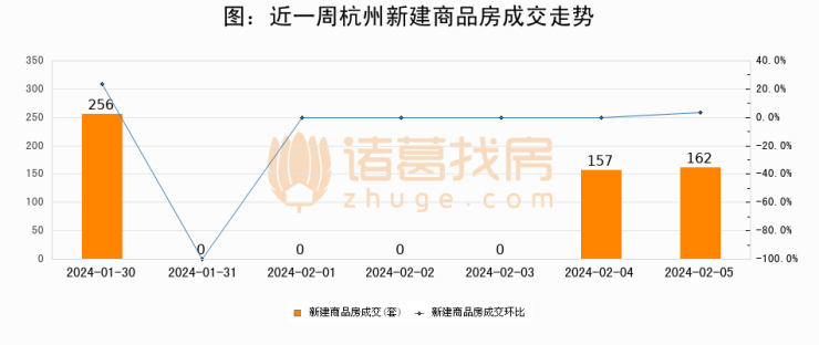 【杭州成交日报】02月05日新房成交162套、二手房59套;涨价房源12套