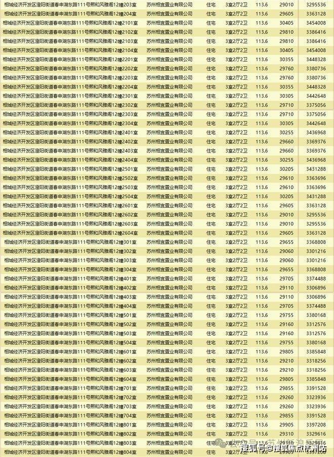 相城热盘熙和风雅阁首批房源取证,共322套房源,房源建面约113.6-183.54㎡,整体备案均价约30000元/㎡,单价区间28237-32773元/㎡,总价区间324-567万元。