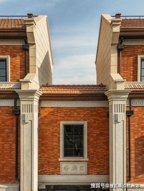 每一处细节都可以看出翠湖滨江的极尽用心——精巧的红砖镂空景墙、房檐上隐约可见的山茶花雕花、极具海派韵味的石库门、石材斜切面的窗套。