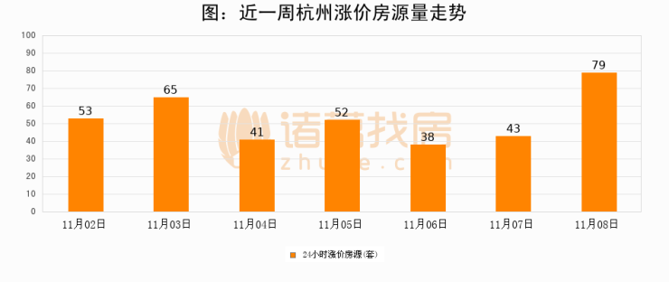 根据诸葛找房数据显示,杭州24小时涨价房源量为79套,较11月07日增加36套,环比上涨83.7%。与此同时,涨价房源占比小幅扩大,业主信心有所提升。