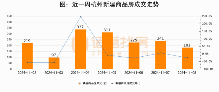 【杭州成交日报】11月08日新房成交181套、二手房390套;涨价房源79套