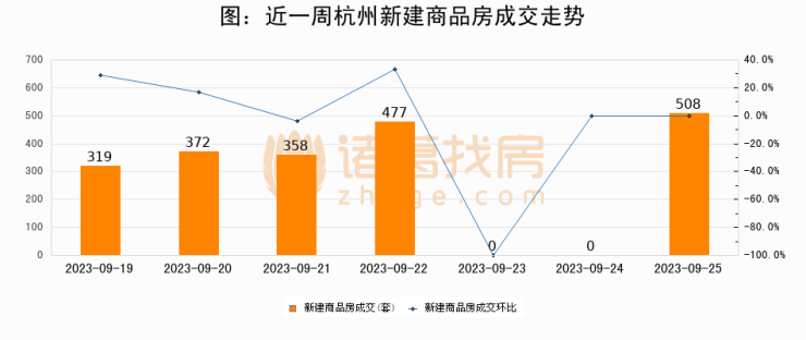 【杭州成交日报】09月25日新房成交508套、二手房190套;涨价房源47套