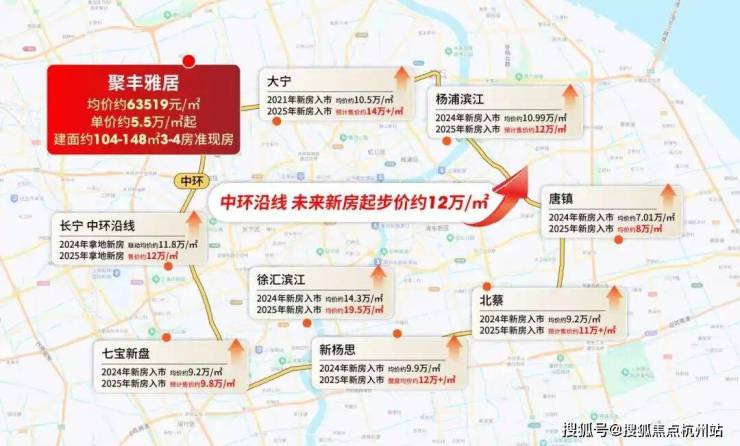 中环线在“地王频出”的当下,沿线新房筑底价已接近12万/㎡,甚至闵行靠外环的新房单价已近10万/㎡。对比之下,聚丰雅居以“中环旁、双轨交、准现房”的配置,搭配约6.39万/㎡均价,约5.5万/㎡起单价,性价比优势一目了然。
