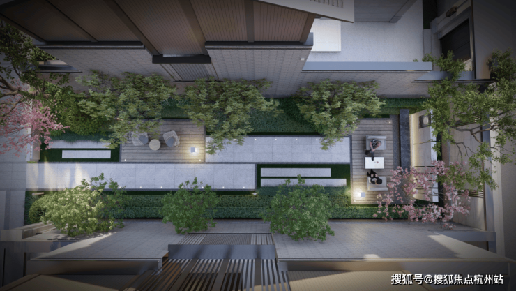社区内部精心打造多重景观空间:林下花园庭院与多元交互架空层呈现四季分明的宅间风光;融合睦邻、亲子、漫步等功能的乐活聚场,让园林成为日常生活的延伸,提升居住舒适度。