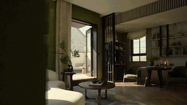 会所也由傅厚民设计,室内通过诸多细节,展示连接过去与现在的对话。例如,特别设计了一条结合石库门拱门元素的通道,让人们在这里就能感受到一段传承的历史记忆。