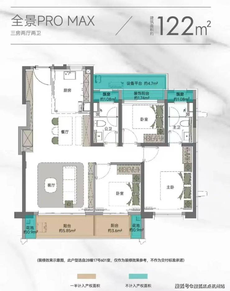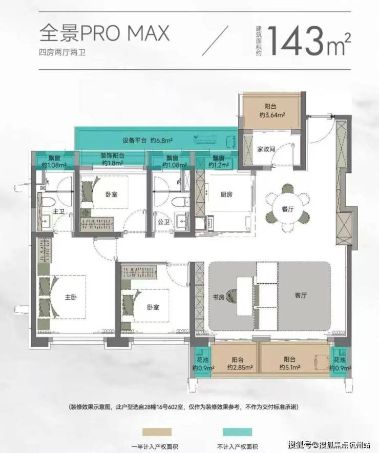 以105㎡的户型为例,“三阳台”搭配花池的设计,直接性价比拉满,按照规定:阳台计一半面积,花池不计面积,加上主卧+卫生间还带飘窗(主卧飘窗非承重结构),如此算下来,对购房者而言,日常可以实打实利用到的面积是远超市面上其他三房产品。