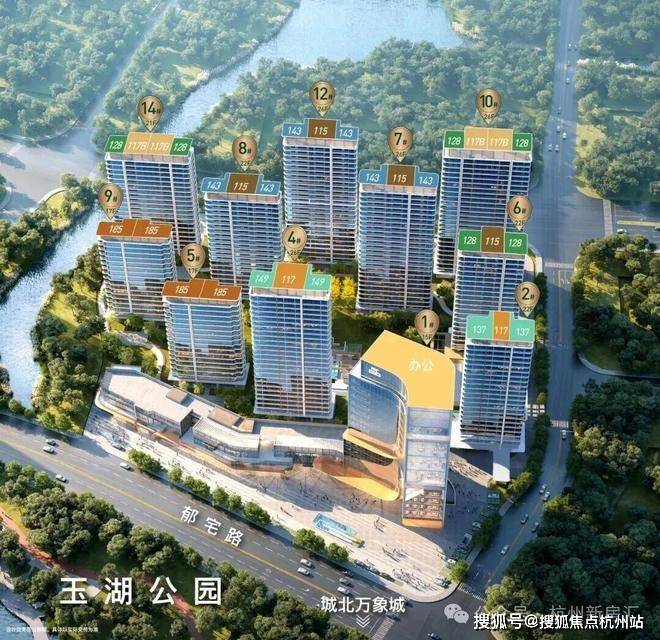 中建·玉湖之星: 玉湖CBD置身城北万象城!“推窗见湖下楼入园” 中建在杭首个115-185㎡湖居高端住宅!