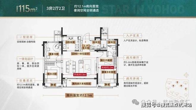 卧室皆带窗,崇尚阳光平权。约 5.8m 大气朝南双厅,朋友来做客超有面;动静分区也很懂生活,娱乐、休憩互不干扰。