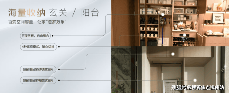 光合上城不仅打造定制级全屋收纳系统,并且从玄关、厨房、卫浴、阳台四大空间,充分考量生活场景细节,随时随地满足收纳所需,带来4重海纳系统,让每一个业主都成为空间管理大师!