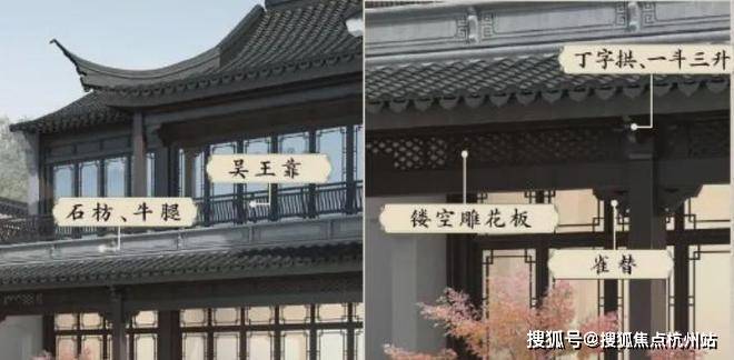 上海桃花源金瑞园由繁入简,分解提炼出属于当下的中式审美,在明清风格中优化融入宋代特点,如出檐宽广,并增设斗拱、镂空雕花、甘蔗脊竖、阑额等元素。