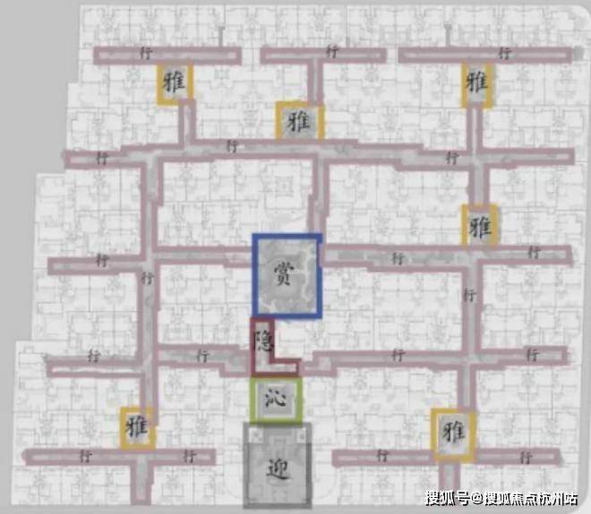 定睛细看后会发现,无论是景观组团和建筑分布均无“定式”可循,而是采用“互相因借,主从有分,错落排布”的理念进行排布。