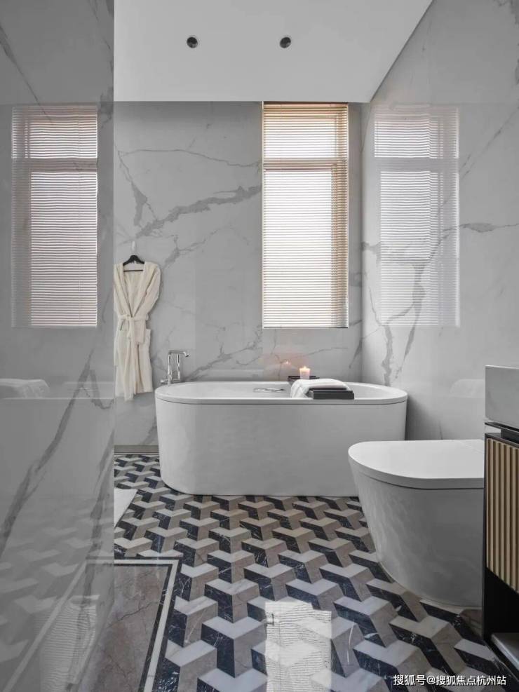 5、卫生同:石膏板吊顶,刷涂料,地面铺石材或诺贝尔品牌地砖,墙身贴石材