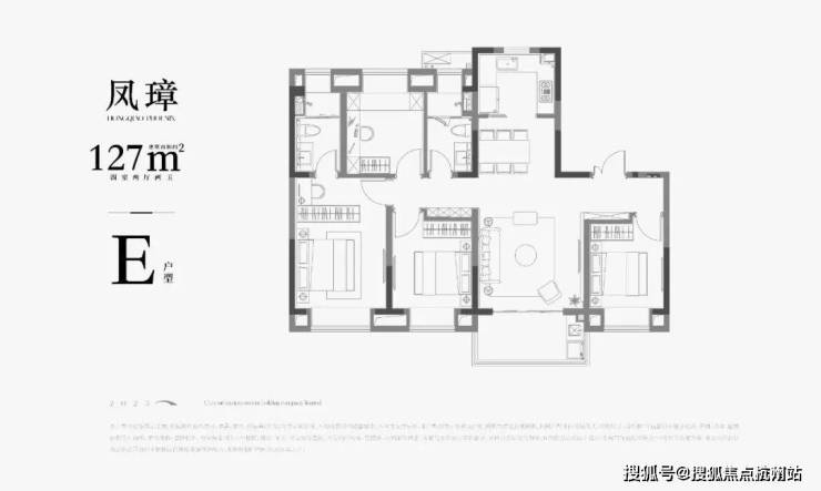 E户型 | 建面约127㎡4房户型图▼