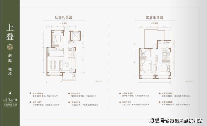 一层是会客区,大尺度横厅,可以打造客餐厅,采光条件优越,还配备了颐养房,方便家中老人居住。二层双南大套房+南向阔景飘窗+三卫的设计,空间层层递进,尊崇有序。大华·梧桐樾售楼处电话:400-8778-334(户型详解专线)