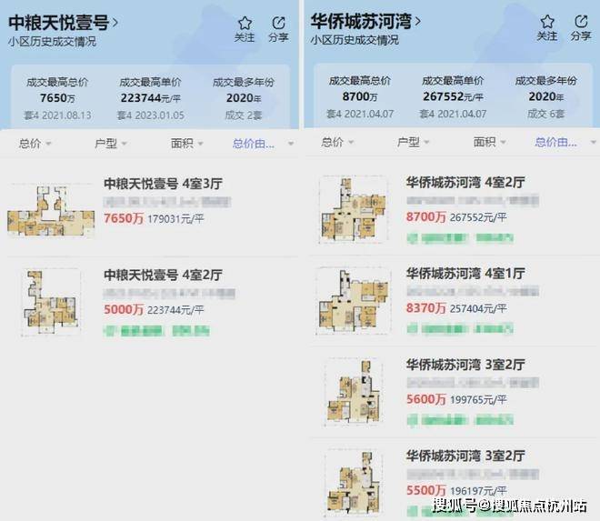 区域内多个项目单套成交价格突破半亿,如华侨城苏河湾、中粮天悦壹号、傲舍(10月底网签成交1套353平大户型新房,总价5138万)等,高端属性已然成型。