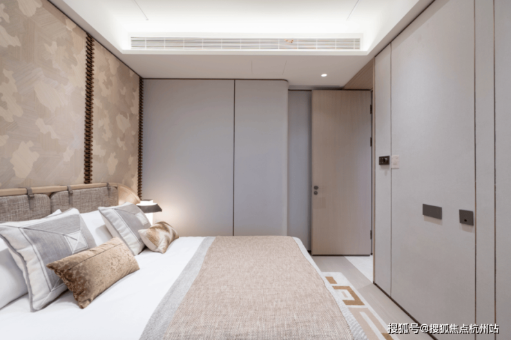 主卧更做到约3.4米净面宽,空间充裕到可以在床尾额外增设衣柜。