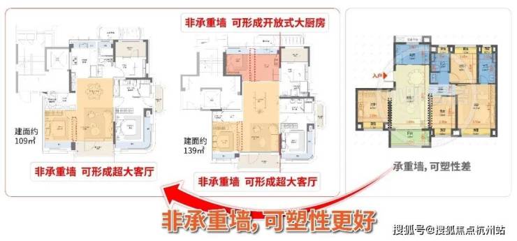 区别于传统固定格局的三房、四房,项目户型预留了极高改造自由度: