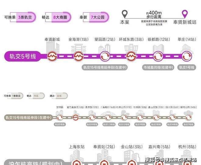 轨交网络:5号线、15号线南延伸段(在建中)、市域嘉闵线南延伸段(规划中)、沪乍杭高铁(规划中)及南枫线(在建中)