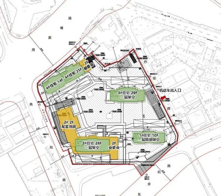 3号楼为29F高层住宅,4号楼分别为14F高层住宅、一层人才房;